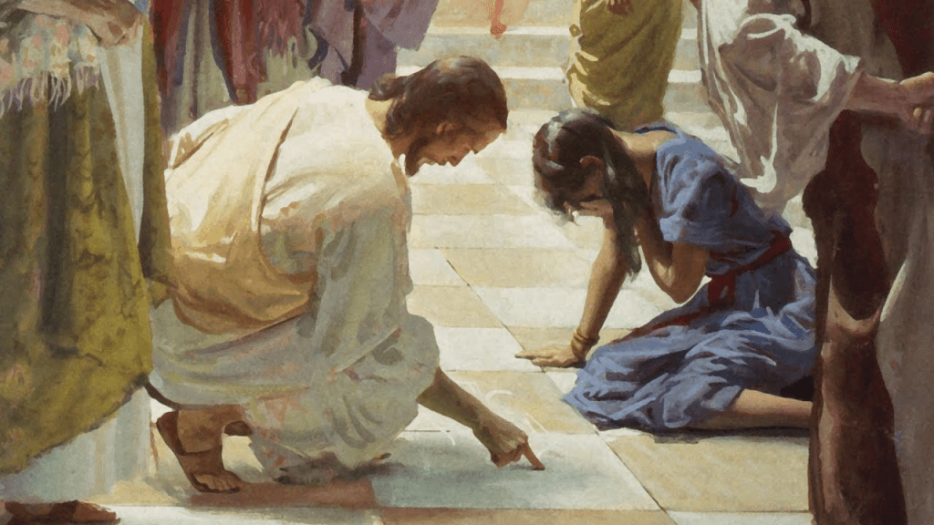 In John 8.1-11, there is a woman caught in the act of adultery. According to Paul, adultery is the most carnal act you can commit, the most obvious sign of being in the flesh. It breaks one of the big ten commandments. Surely if there is a time to accuse and bring the full weight of truth and holiness on someone, it is an adulterer – someone who is ruining at least one marriage, destroying lives, acting purely selfishly and ignoring the Lord.